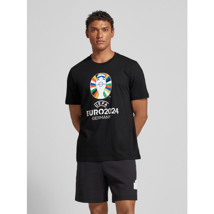 Muestre con orgullo su entusiasmo por la máxima competición internacional de fútbol de Europa. Esta camiseta de algodón suave de adidas presenta un logotipo oficial del torneo, estampado en el pecho. Diseñada para brindar comodidad durante todo el día, esta camiseta es una pieza esencial para completar tu guardarropa de torneo.